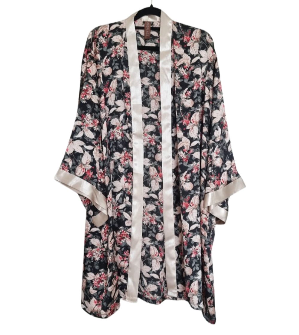 - The delicate berry and leaf motif rests on a dark backdrop, framed with a silky ivory trim that adds a touch of luxe sophistication.