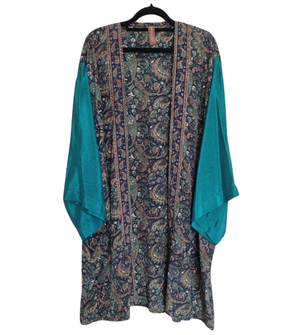 Be the first to review “Green Paisley with Turquoise Sleeves Cotton Mix Kimono”